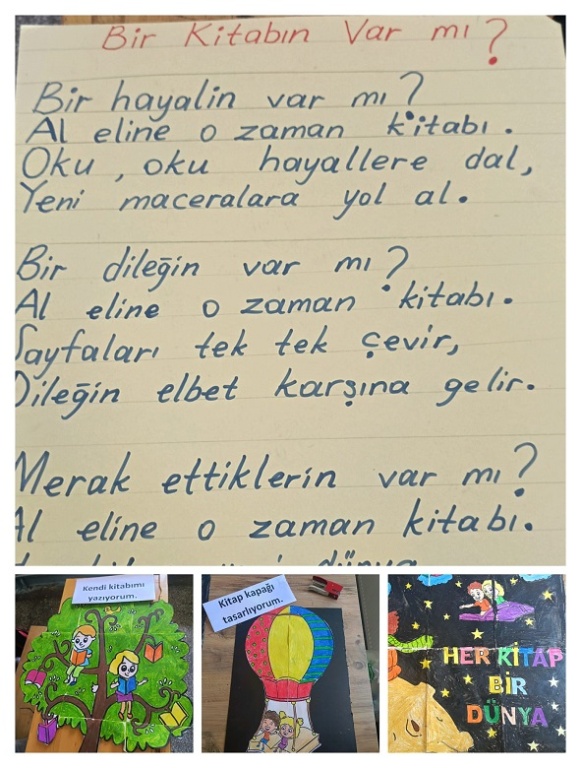 4-A sınıfı öğrencilerimiz öğretmenleri Özlem ERZURUM rehberliğinde hikaye kitabı yazma ve kitap kapağı oluşturma etkinliği düzenledi. Okulumuzda bulunan tüm öğrencilerin ve öğretmenlerin de bu güzel eserleri incelediği sergide birbirinden güzel eserlerin ortaya çıktığı görüldü. Tamamen öğrencilerimizin özgün çalışmalarıyla ortaya çıkan bu güzel eserlerin ortaya çıkarılmasında öğrencilerine rehber olan sınıf öğretmenimiz Özlem ERZURUM' a ve öğrencilerimize teşekkür ederiz.